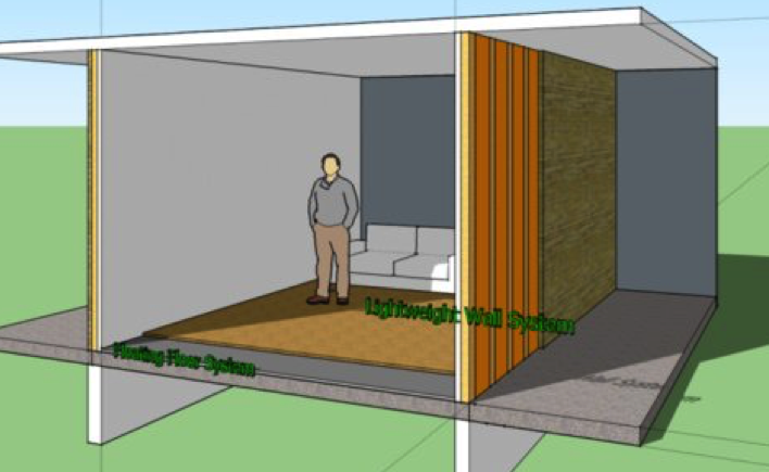 | Lightweight structures Building with lighweight materials is beneficial for economic reasons. However, lightweight building structures lead to various acoustic problems, especially in the low frequency range. In 2015, a PhD research has started in this field titled: Impact noise insulation of lightweight floor systems at low frequencies. ![]() |